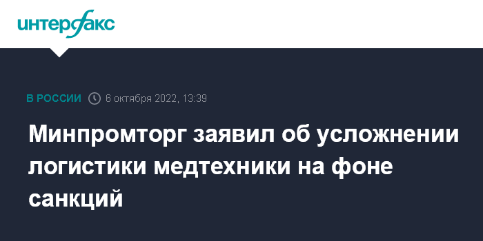 Минпромторг заявил об усложнении логистики медтехники на фоне санкций