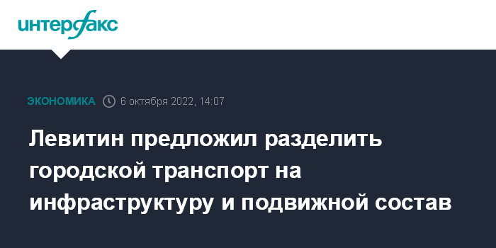 "Поэтому если подходить концептуально к этому вопросу, я понимаю, что не в этом бюджетном периметре, то в будущем нам надо также общественный транспорт разделить на инфраструктуру и подвижной состав. Тогда все деньги, которые мы имеем в муниципальном, в региональном бюджете, они не должны уходить в федеральный центр, они должны оставаться на содержание этой инфраструктуры", - подчеркнул Левитин.