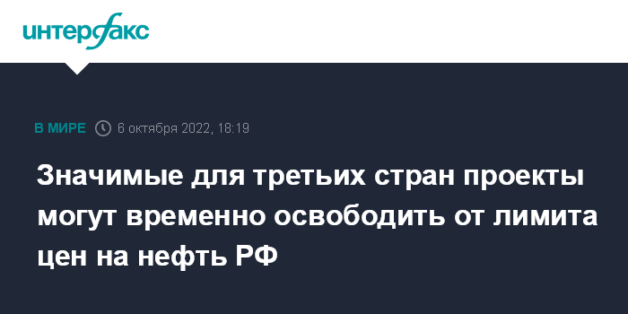 Значимые для третьих стран проекты могут временно освободить от лимита цен на нефть РФ