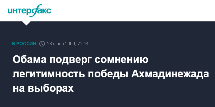 "Мы сейчас знаем лишь то, что значительная часть иранского населения полагает, что выбор нелегитимен, - добавил Обама. - Речь не идет об одиночном примере, небольшом возмущении тут или там. Легитимность этих выборов порождает серьезные вопросы".