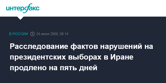 Расследование фактов нарушений на президентских выборах в Иране продлено на пять дней