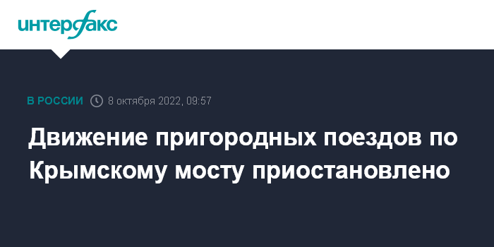 Движение пригородных поездов по Крымскому мосту приостановлено