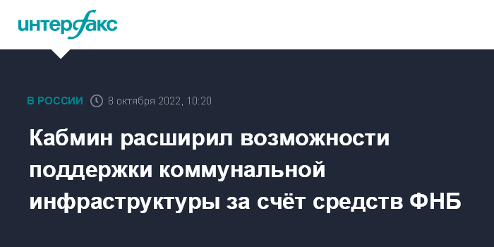 Кабмин расширил возможности поддержки коммунальной инфраструктуры за счёт средств ФНБ