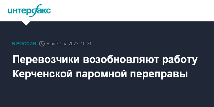 Москва. 8 октября. INTERFAX.RU - Компании-перевозчики возобновляют работа Керченской паромной переправы, сообщил в субботу Минтранс РФ.