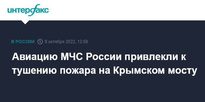 Авиацию МЧС России привлекли к тушению пожара на Крымском мосту