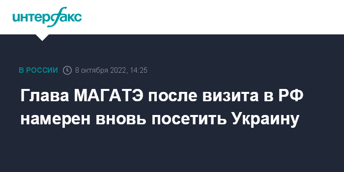 Москва. 8 октября. INTERFAX.RU - Гендиректор МАГАТЭ Рафаэль Гросси заявил, что после запланированной на ближайшее время поездки на переговоры в РФ вновь посетит Украину для обсуждения ситуации с Запорожской АЭС.