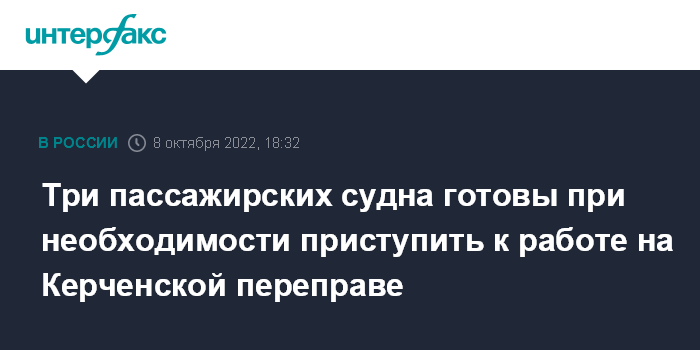"С вечера 08.10.2022 готовы приступить к работе в случае необходимости три пассажирских судна вместимостью 100, 200, и 250 человек", - сообщает министерство.