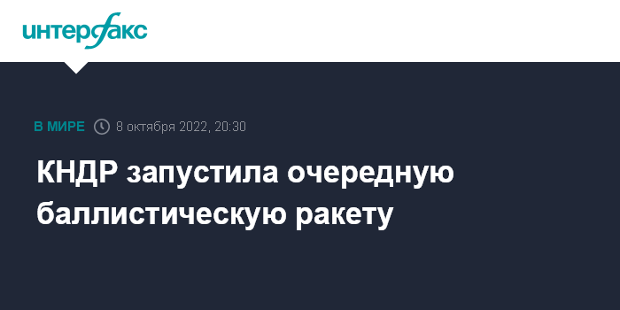 Москва. 8 октября. INTERFAX.RU - В Северной Корее провели в субботу пуск баллистической ракеты в сторону Японского моря, сообщает агентство "Ренхап" со ссылкой на южнокорейское военное командование.