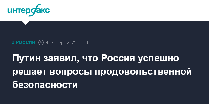 Путин заявил, что Россия успешно решает вопросы продовольственной безопасности
