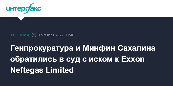 Генпрокуратура и Минфин Сахалина обратились в суд с иском к Exxon Neftegas Limited