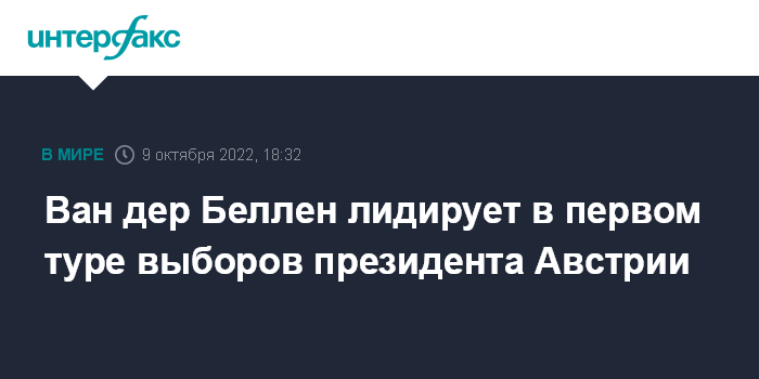 Москва. 9 октября. INTERFAX.RU - Действующий президент Австрии Александер Ван дер Беллен побеждает в первом туре выборов главы государства, сообщает издание Der Standard со ссылкой на экзит-поллы.