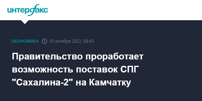 Москва. 10 октября. INTERFAX.RU - Правительство проработает возможность поставок сжиженного природного газа с завода проекта "Сахалин-2" на Камчатку.