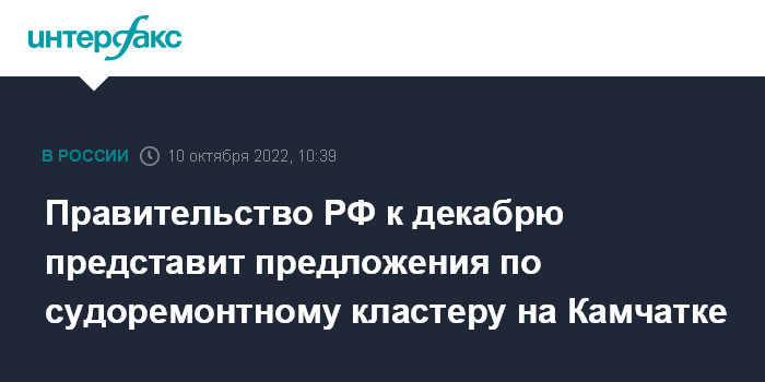 Правительство РФ к декабрю представит предложения по судоремонтному кластеру на Камчатке