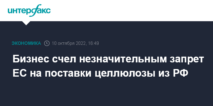 Москва. 10 октября. INTERFAX.RU - Восьмой санкционный пакет Евросоюза, вступивший в действие в прошлую пятницу, расширил перечень запрещенной для ввоза в Европу продукции российского лесоперерабатывающего комплекса (ЛПК) за счет целлюлозной массы и отдельных видов бумаги и картона.