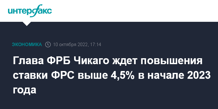 Глава ФРБ Чикаго ждет повышения ставки ФРС выше 4,5% в начале 2023 года
