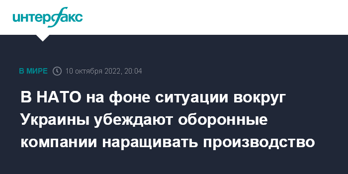 В НАТО на фоне ситуации вокруг Украины убеждают оборонные компании наращивать производство