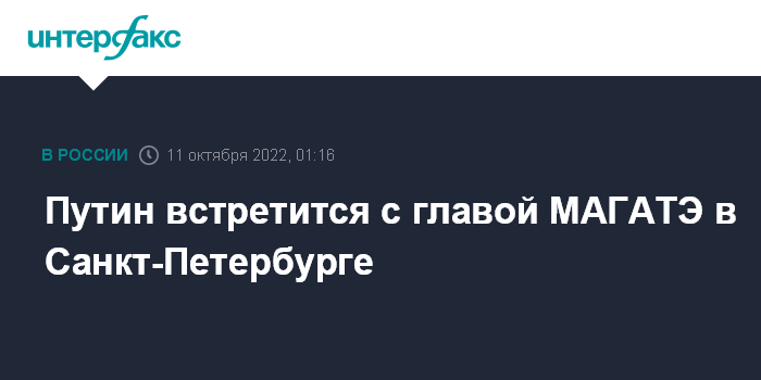 Москва. 11 октября. INTERFAX.RU - Президент России Владимир Путин во вторник в Санкт-Петербурге встретится с гендиректором МАГАТЭ Рафаэлем Гросси.