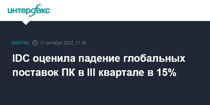 Москва. 11 октября. INTERFAX.RU - В III квартале 2022 года мировые поставки персональных компьютеров снизились на 15% в годовом измерении и составили менее 74,3 млн, показали предварительные данные International Data Corporation (IDC).