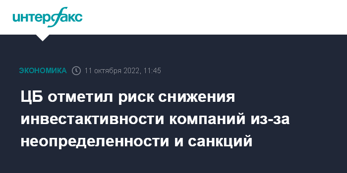 ЦБ отметил риск снижения инвестактивности компаний из-за неопределенности и санкций