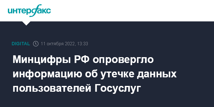 Минцифры РФ опровергло информацию об утечке данных пользователей Госуслуг