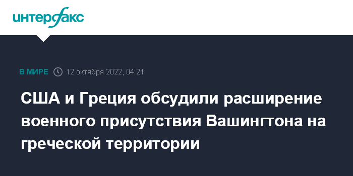 "Стороны поделились взглядами на расширение военного присутствия Соединенных Штатов в заливе Суда и в других районах Греции в качестве средства усиления поддержки Североатлантического союза, особенно в Восточном Средиземноморье, на Балканах и в Черном море, а также на южном фланге НАТО", - говорится в сообщении.