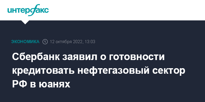 Сбербанк заявил о готовности кредитовать нефтегазовый сектор РФ в юанях