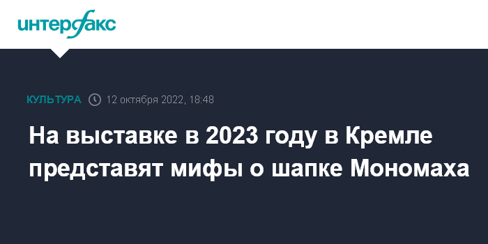 Москва. 12 октября. INTERFAX.RU - В 2023 году в Музеях Московского Кремля пройдет, в частности, выставка "Легендарные реликвии Оружейной палаты" об исторических мифах, связанных с экспонатами музеев, например, с шапкой Мономаха.