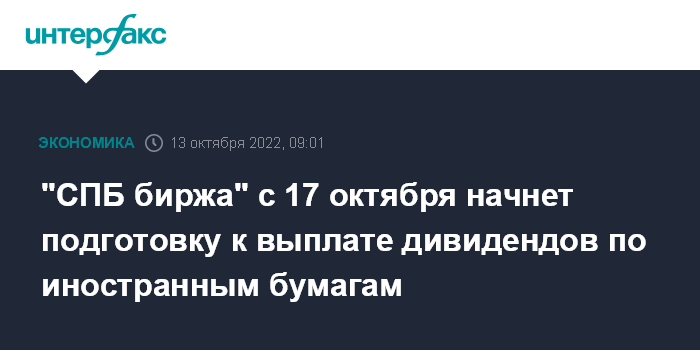 "СПБ биржа" с 17 октября начнет подготовку к выплате дивидендов по иностранным бумагам