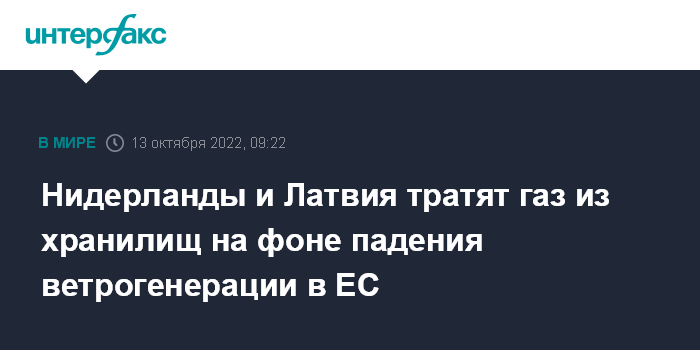 Латвия и Нидерланды перешли к чистому отбору газа из своих хранилищ.