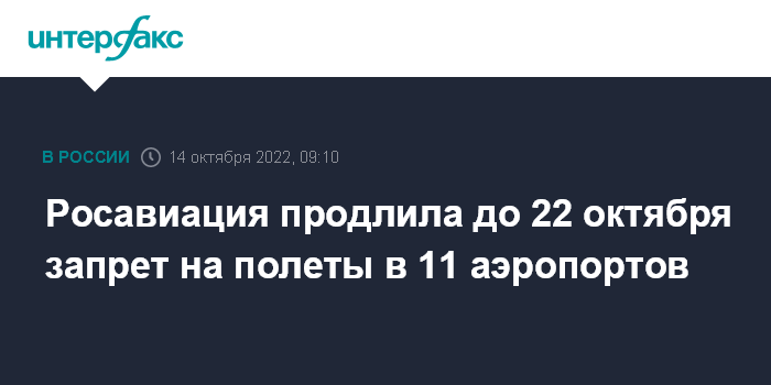 Росавиация продлила до 22 октября запрет на полеты в 11 аэропортов