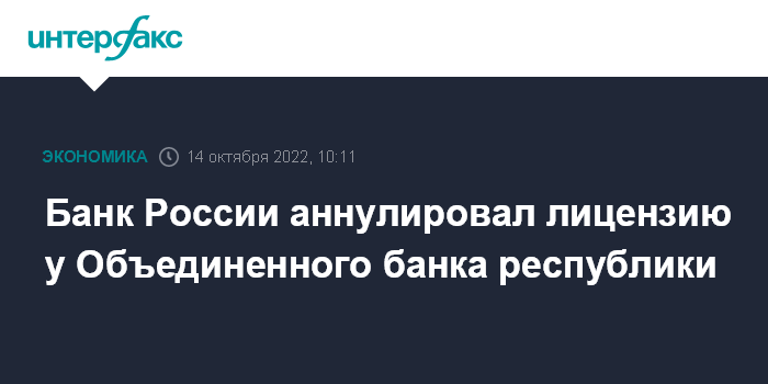 Москва. 14 октября. INTERFAX.RU -Банк России аннулировал лицензию на проведение банковских операций у чувашского Объединенного банка республики.