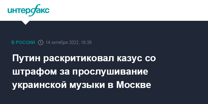 Путин раскритиковал казус со штрафом за прослушивание украинской музыки в Москве