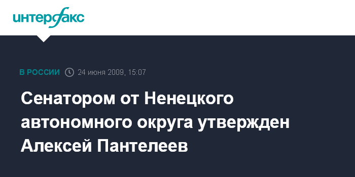 Москва. 24 июня. INTERFAX.RU - Депутаты Ненецкого автономного округа на заседании в среду одобрили кандидатуру Алексея Пантелеева сенатором от парламента округа в Совете Федерации. Как сообщили "Интерфаксу" в пресс-службе окружного собрания депутатов, кандидатура Пантелеева была одобрена единогласно.