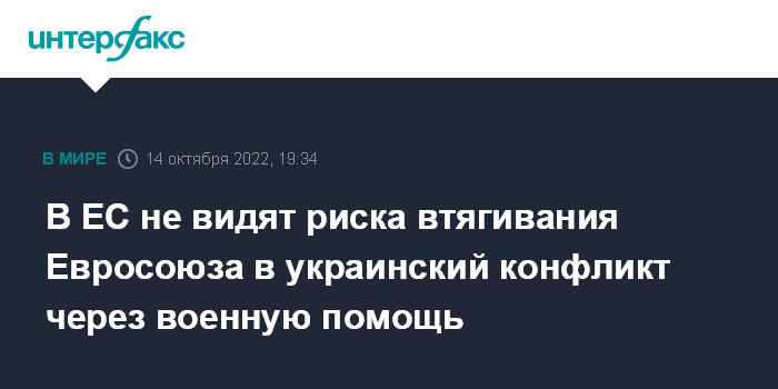 В ЕС не видят риска втягивания Евросоюза в украинский конфликт через военную помощь