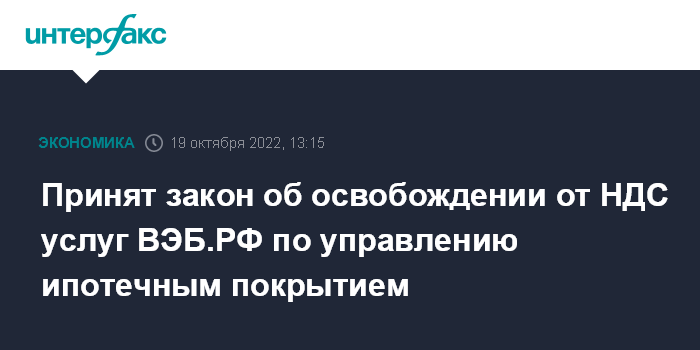 Принят закон об освобождении от НДС услуг ВЭБ.РФ по управлению ипотечным покрытием