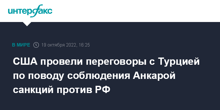 США провели переговоры с Турцией по поводу соблюдения Анкарой санкций против РФ