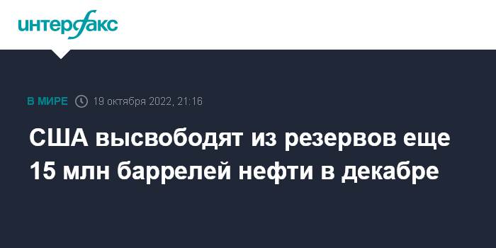 "Министерство энергетики высвободит еще 15 млн баррелей из стратегического нефтяного запаса, увеличив таким образом ранее заявленный объем в декабре", - сказал он, выступая в Белом доме.