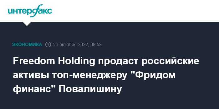 Freedom Holding продаcт российские активы топ-менеджеру "Фридом финанс" Повалишину