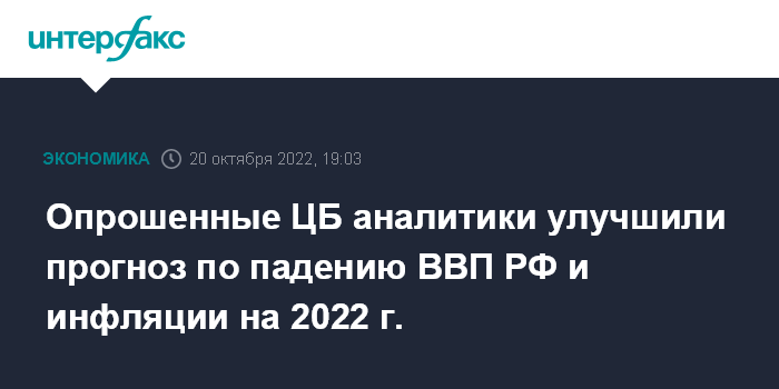 По сравнению с опросом в сентябре улучшился прогноз как по падению ВВП (в сентябре прогнозировали падение на 4,2% в 2022 году), так и по инфляции (в сентябре ожидания по инфляции на 2022 год составляли 12,9%).