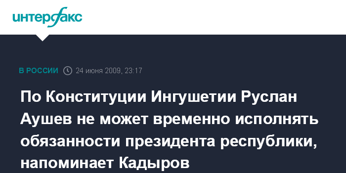 По Конституции Ингушетии Руслан Аушев не может временно исполнять обязанности президента республики, напоминает Кадыров
