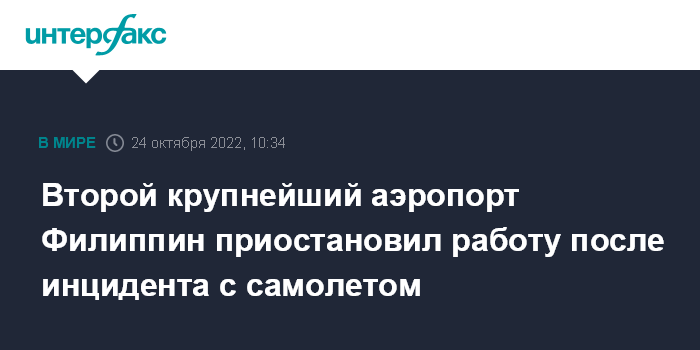 Второй крупнейший аэропорт Филиппин приостановил работу после инцидента с самолетом