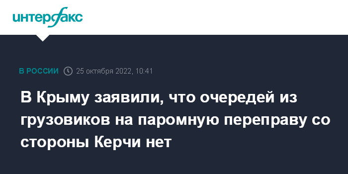 Москва. 25 октября. INTERFAX.RU - Грузовые автомобили с крымской стороны заезжают на паромы Керченской переправы без ожидания, сообщает пресс-служба министерства транспорта Крыма во вторник.
