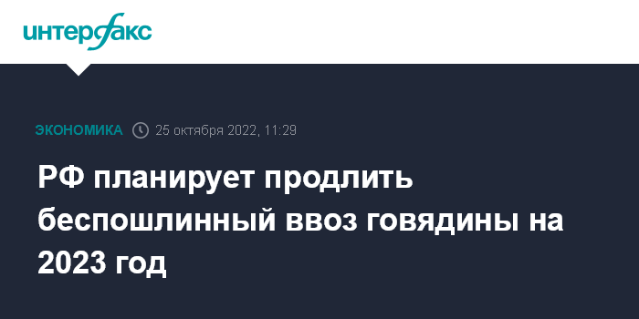 РФ планирует продлить беспошлинный ввоз говядины на 2023 год