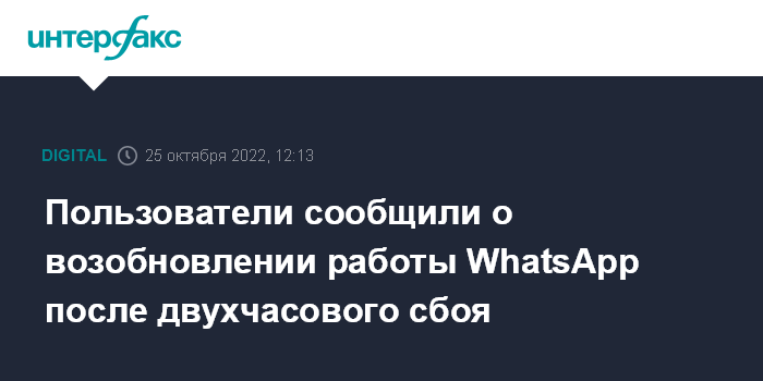 Москва. 25 октября. INTERFAX.RU - Мессенджер WhatsApp вновь заработал после крупного глобального сбоя во вторник, убедился корреспондент "Интерфакса".