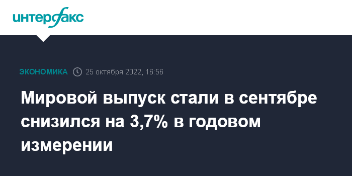 Мировой выпуск стали в сентябре снизился на 3,7% в годовом измерении