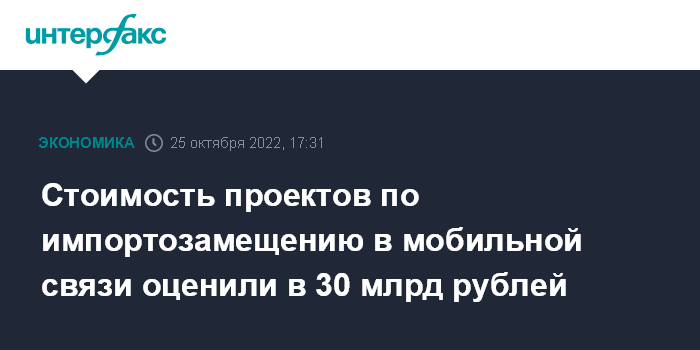 Стоимость проектов по импортозамещению в мобильной связи оценили в 30 млрд рублей