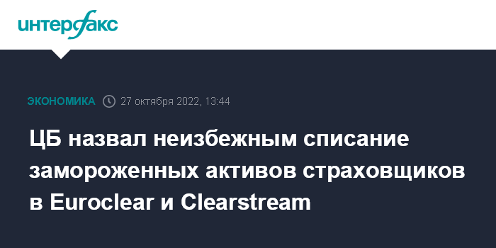 ЦБ назвал неизбежным списание замороженных активов страховщиков в Euroclear и Clearstream
