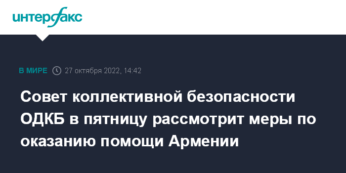 Совет коллективной безопасности ОДКБ в пятницу рассмотрит меры по оказанию помощи Армении