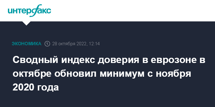 Сводный индекс доверия в еврозоне в октябре обновил минимум с ноября 2020 года
