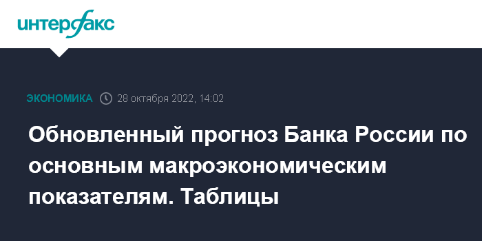 Москва. 28 октября. INTERFAX.RU - Банк России опубликовал обновленный прогноз основных макроэкономических показателей.